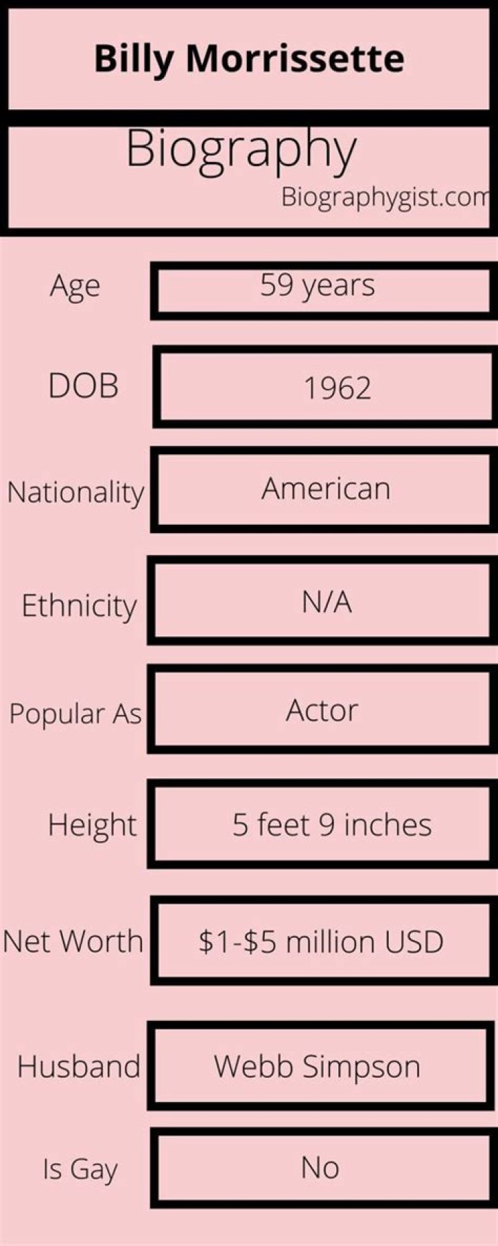 Billy Morrissette was born in 1962. He is an actor and writer, known for Pump Up the Volume (1990), Severed Ties (1992) and Vegas Vacation (1997). He was previously married to Maura Tierney. | Net Worth | $1.9 Million |