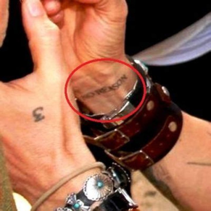 Meaning: Johnny got this tattoo inspired by Marilyn Manson’s song “Overneath the Path of Misery,” which was published in 2012. Marilyn Manson, on the other hand, has an identical tattoo on his left wrist.