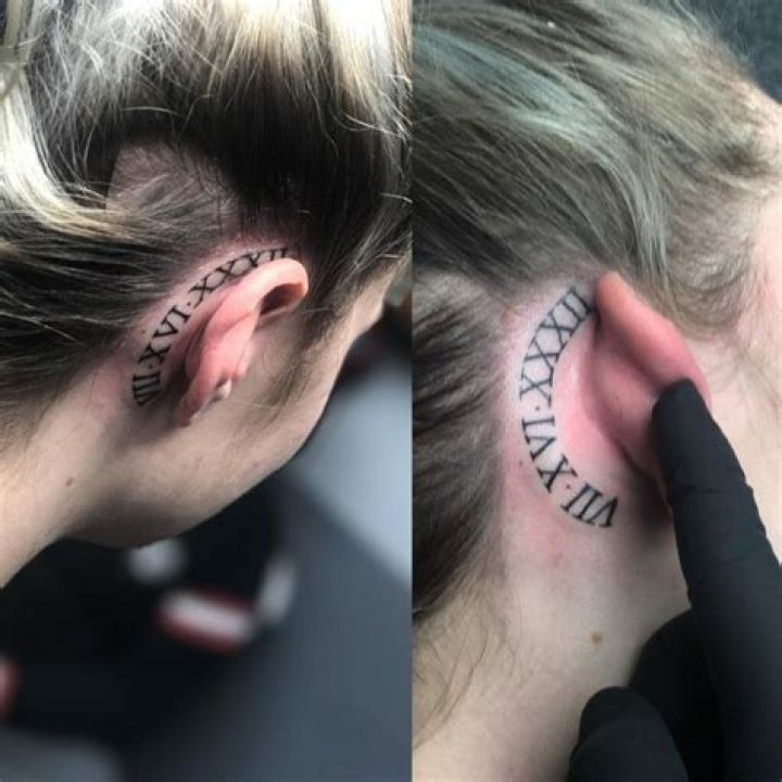 - Celebrating Anniversaries: Roman numeral tattoos are also popular for commemorating wedding anniversaries, marking milestones in a couple's relationship. By inking the date of their marriage or a significant anniversary behind their ear, individuals carry a constant reminder of their love and commitment.