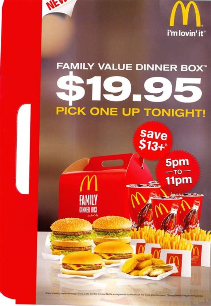 The McDonald's dinner box is also convenient because it is available in a variety of locations. McDonald's restaurants are located in most towns and cities, and many are open 24 hours a day. This makes it easy to get a McDonald's dinner box no matter where you are or what time it is.