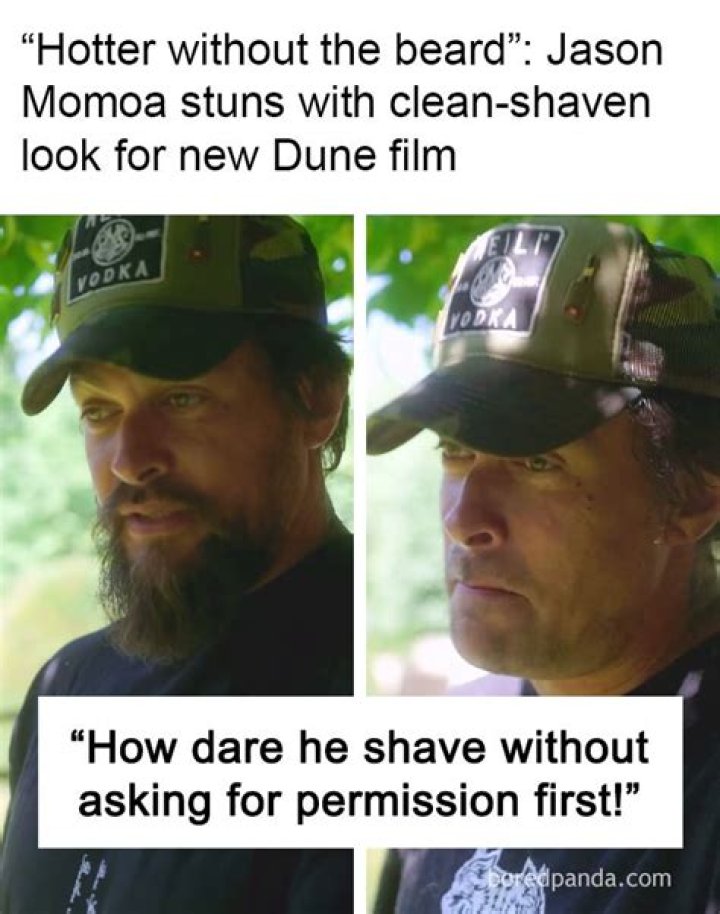 - Origin: The meme originated in 2019, when a photo of Momoa without his beard was posted on social media.