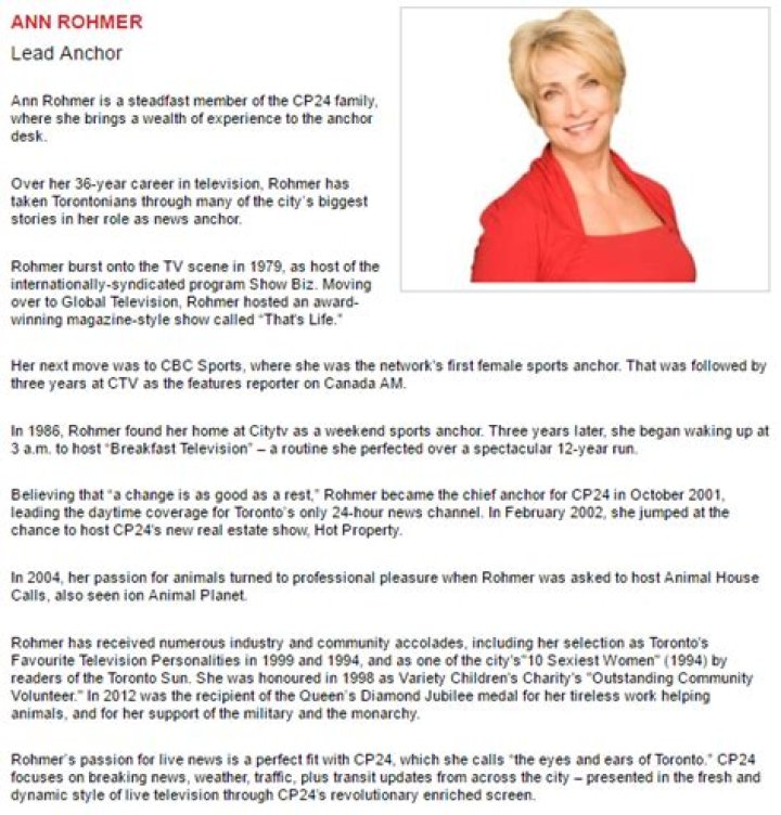 Ann Rohmer The athletic sports anchor for CITY TV, who is 5 feet, 4