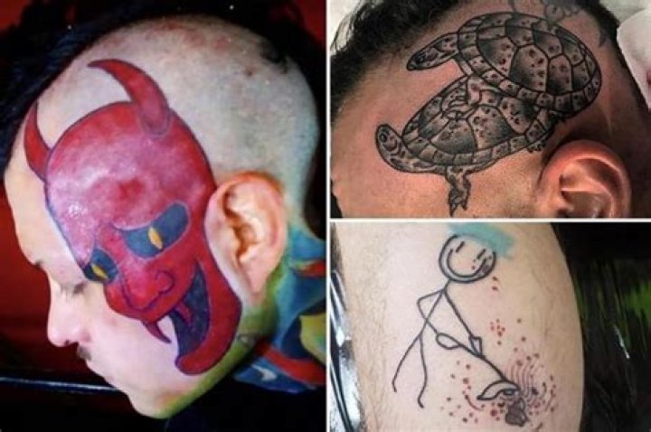 Another decided to get inked with a drawing that definitely should have been stencilled on first.